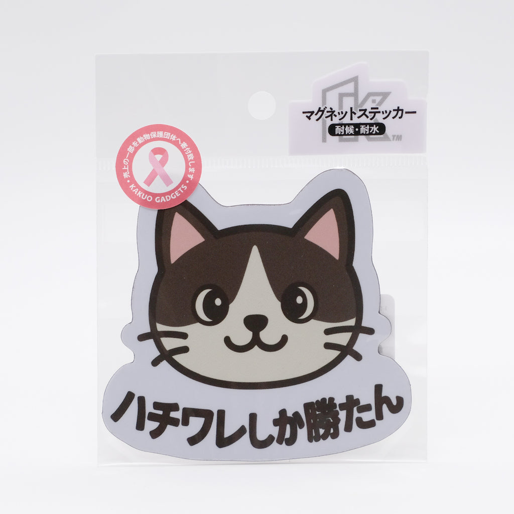 推しネコ ハチワレしか勝たん マグネットステッカー 耐候 耐水 9cm
